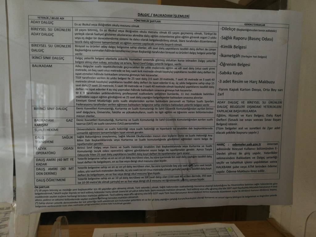 Birinci Sınıf Dalgıç belgesine başvurmak için geldiğimi söyledim, ve sürpriz haber tüm devlet yapılanmamız içinde Tuzla liman başkanlığı içinde bu belgelerle ilgilenen tek bir kişi varmış. Tek.