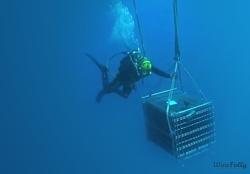New York Times makalesinde bide bu video eklenmiş. İncelediğimizde Kirby Morgan giyen endüstriyel başlıklı dalgıçların şarapların çelik depolama kafeslerini yerleştirmelerini ve sonrasında çıkarma sahnelerini görebiliyoruz. Scuba sistemiyle dalış yapan ve profesyonel kameralarla çekim yapan dalgıçlarda bulunuyor. Bence en ilginci çok garip bir görünüşe sahip bir ROV’ u da görüntüleme için kullanmış olmaları. Şarapların bu aşaması için seçilmiş endüstriyel dalış şirketinin adı Drafin Sub’ mış.